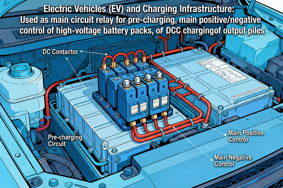 وبالتالي توصيل الدائرة الرئيسية ذات الجهد العالي DC. بعد إيقاف تشغيل الملف، ينقطع الاتصال بسرعة تحت تأثير زنبرك التفاعل (أو القوة المغناطيسية الدائمة)، مما يؤدي إلى قطع الدائرة.