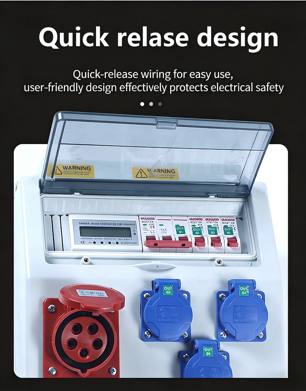 بمجرد دخول الكابل الوارد، فإنه يمر عبر القابس الوارد، ويمر عبر قاطع الدائرة MCB، ويتم توصيله بمقبس الإخراج لإخراج مصدر الطاقة الفعلي المطلوب