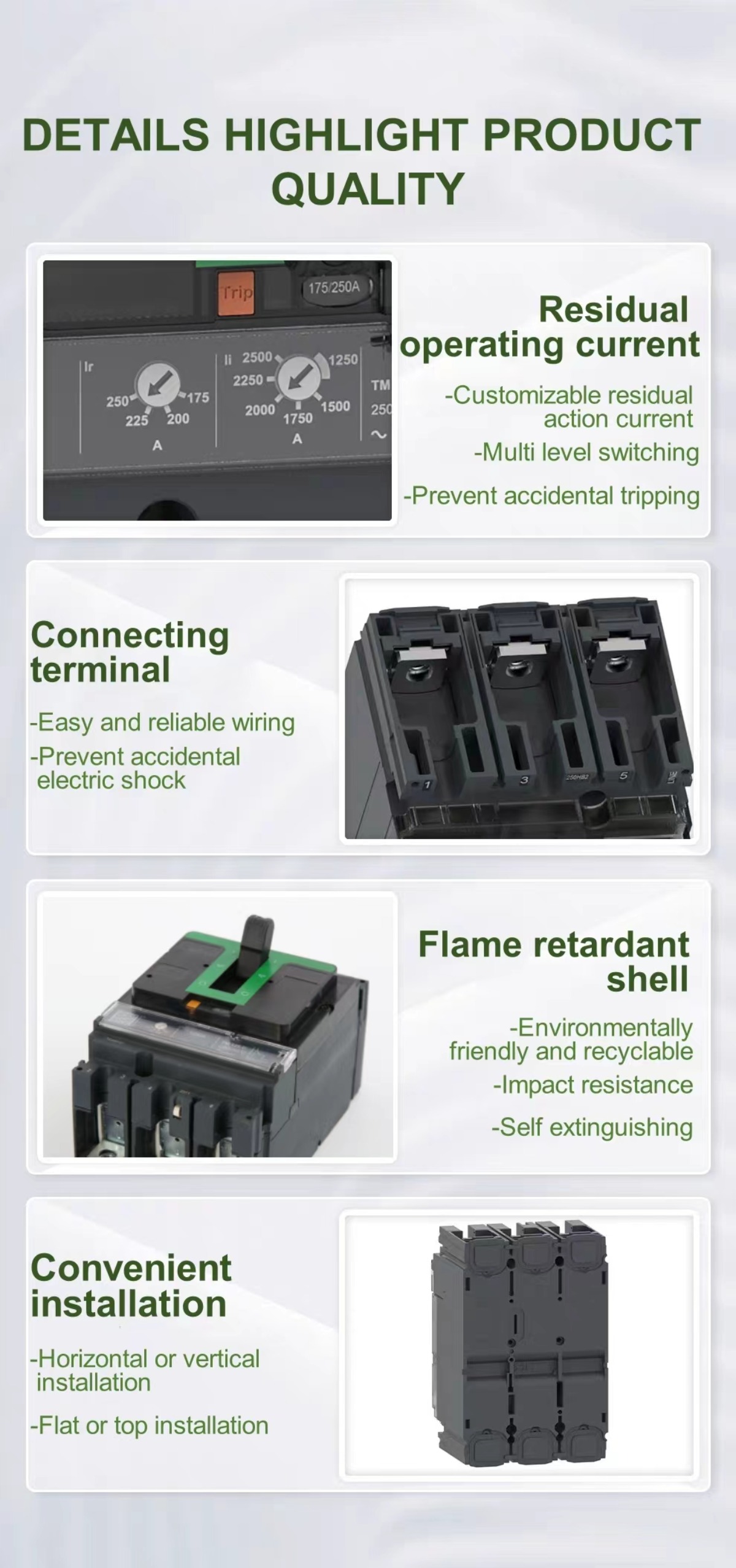 عندما يحدث ماس كهربائي، فإن التيار العالي اللحظي يولد مجالًا مغناطيسيًا قويًا، مما يدفع المحرك إلى الاصطدام بآلية التحرير والانفصال بسرعة في غضون مللي ثانية، مما يؤدي إلى قمع تيار الخطأ.
